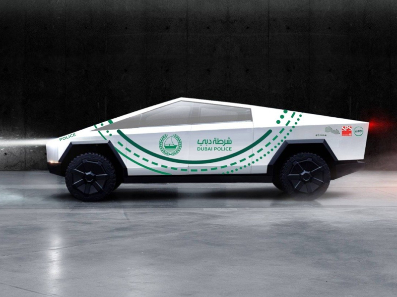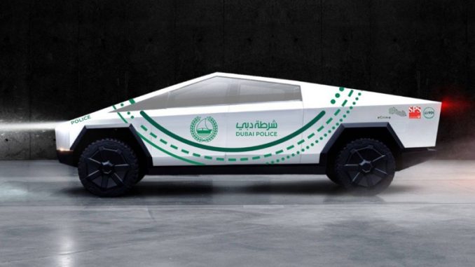Dubai police have released a picture of the Tesla armored steel truck, CyberTrack, and commented on its Twitter account yesterday: «Dubai Police launch the future car 2020».
