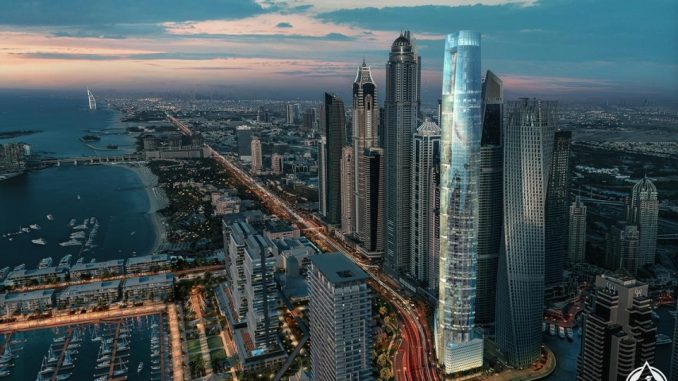 When completed, “Ciel” will be at Dubai Marina four meters higher than the current title holder in the emirate, and the building, which is 360 meters high, will contain 1,209 luxury hotel suites and serviced apartments spread over 82 floors.